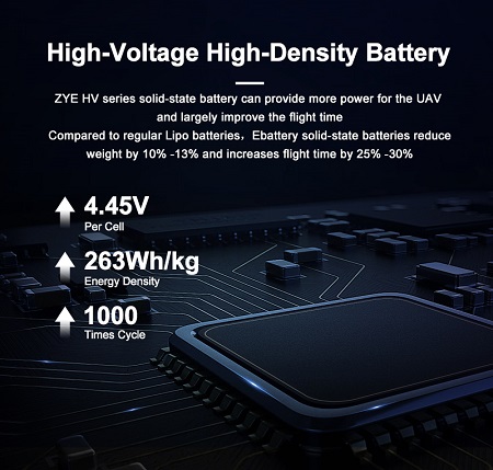 ٹھوس ریاست کی بیٹری کے خلیات روایتی لتیم آئن بیٹریوں کے مقابلے میں اعلی توانائی کی کثافت پر فخر کرتے ہیں۔ اس کا مطلب ہے کہ وہ ایک ہی حجم میں زیادہ سے زیادہ توانائی محفوظ کرسکتے ہیں ، جس سے ڈرونز کو بیٹری کے سائز یا وزن میں اضافہ کیے بغیر توسیع شدہ ادوار تک اڑ سکتا ہے۔ بہتر توانائی کی کثافت براہ راست طویل پرواز کے اوقات میں ترجمہ کرتی ہے ، جس سے ڈرونز کو زیادہ سے زیادہ فاصلوں کا احاطہ کرنے اور ایک ہی چارج پر مزید پیچیدہ مشنوں کو مکمل کرنے کے قابل بناتا ہے۔